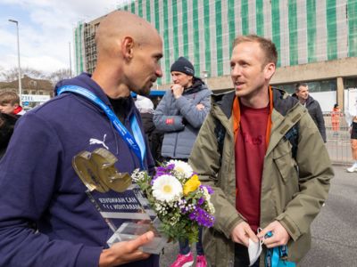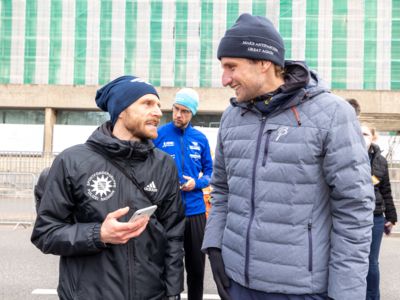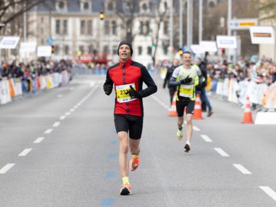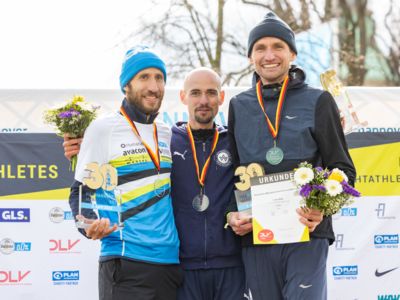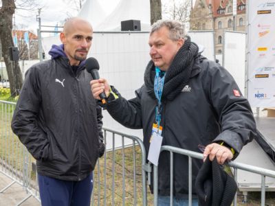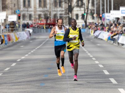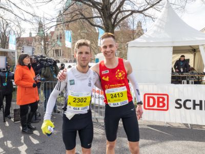 Erst auf den letzten zwei Kilometern konnte er das Tempo nicht mehr ganz halten. Platz zwei im Rennen um die Deutsche Meisterschaft sicherte sich Frank Schauer (Foto li./Tangermünde Elbdeichmarathon), der nach 2:14:43 als Fünfter ins Ziel gekommen war. Jeweils einen Rang dahinter folgte Erik Hille (Foto re./LG Telis Finanz Regensburg) in 2:15:04. Beide liefen persönliche Bestzeiten.