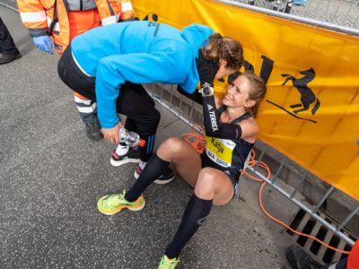 Für die ursprüngliche Favoritin Rabea Schöneborn (Foto li.) reichte es nur für Rang zwei. „Ich habe heute schwer gekämpft und bin froh im Ziel zu sein“, sagte die Berlinerin, die in 2:27:35 Stunden immerhin ihre zweitbeste Marathonzeit erreichte. Sabine Burgdorf (ASV Köln) war als Neunte mit 2:41:11 die drittbeste deutsche Läuferin.