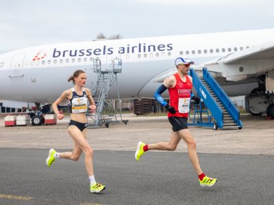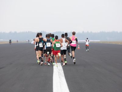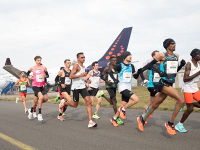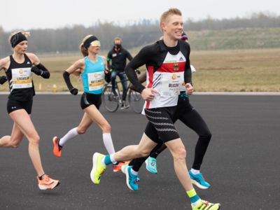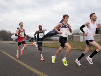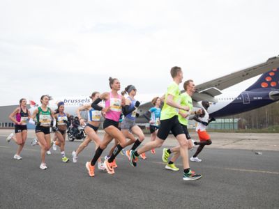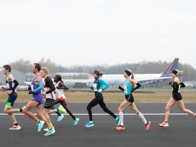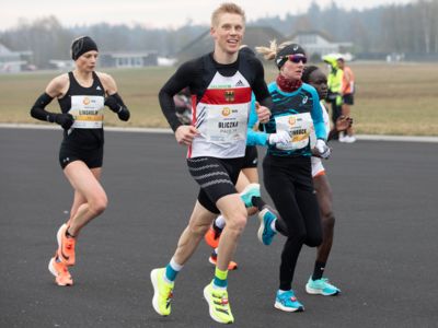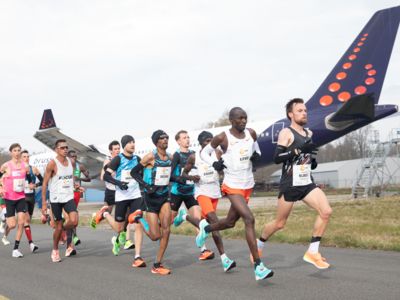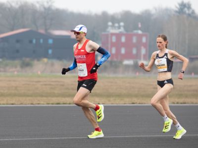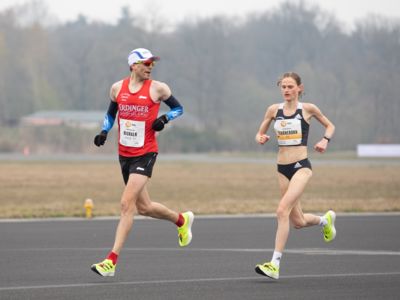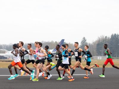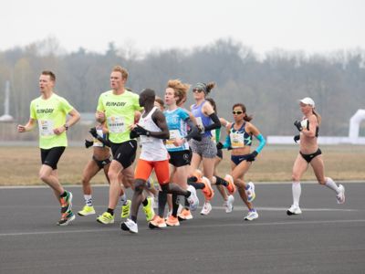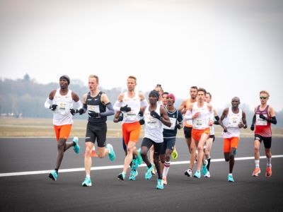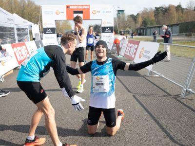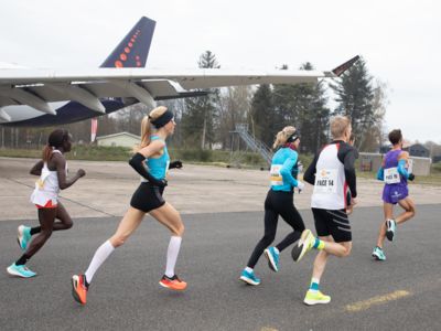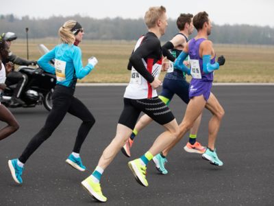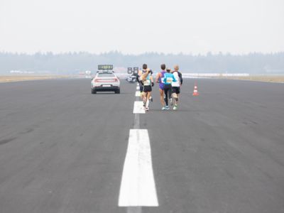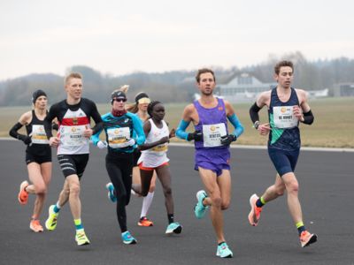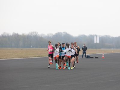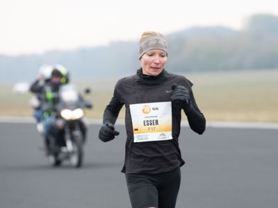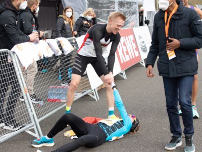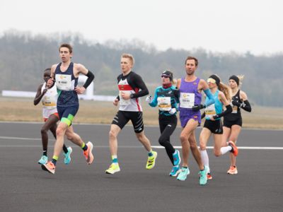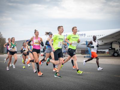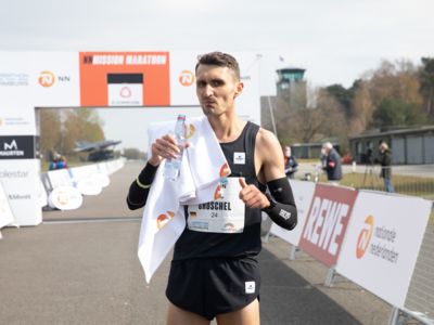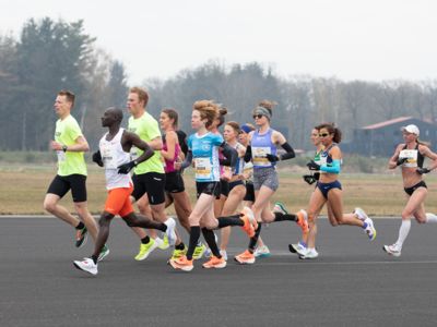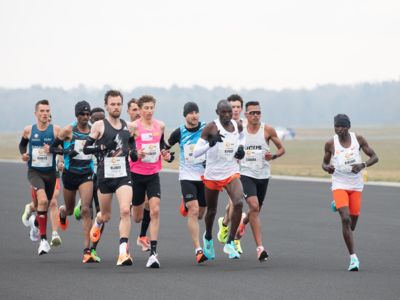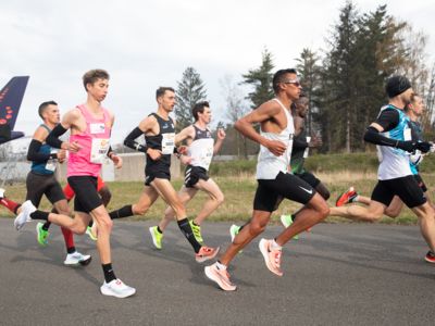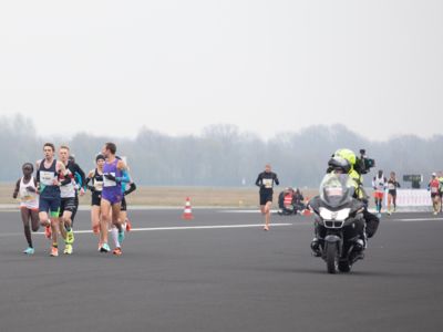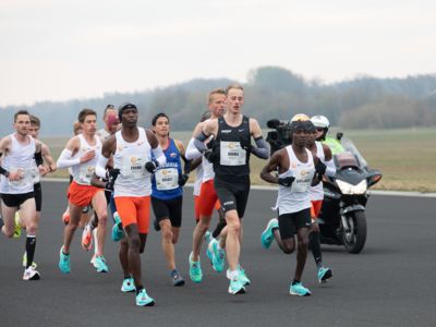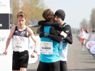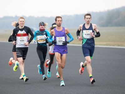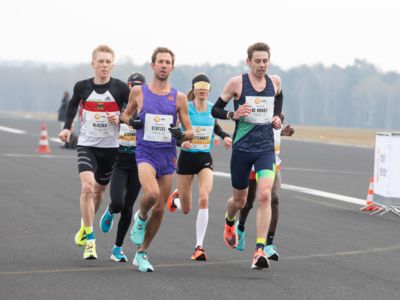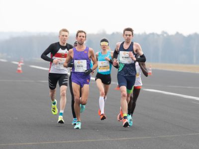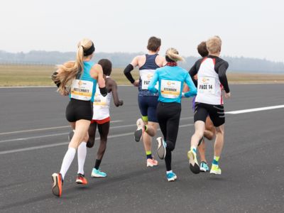Was für ihn vielleicht noch wertvoller war: Nach Verletzungsproblemen ist er ohne Probleme ins Ziel gekommen. „Ich bin sehr zufrieden mit meinem Rennen. Es war schon ein Ritt auf der Rasierklinge, dieses Tempo anzugehen. Als dann meine Gruppe bei Kilometer 28 auseinander fiel, wurden die Runden auf dem Flugfeld schon sehr, sehr lang“, sagte Tom Gröschel, der sich nach einer Erholungsphase auf einen Herbst-Marathon vorbereiten wird.
