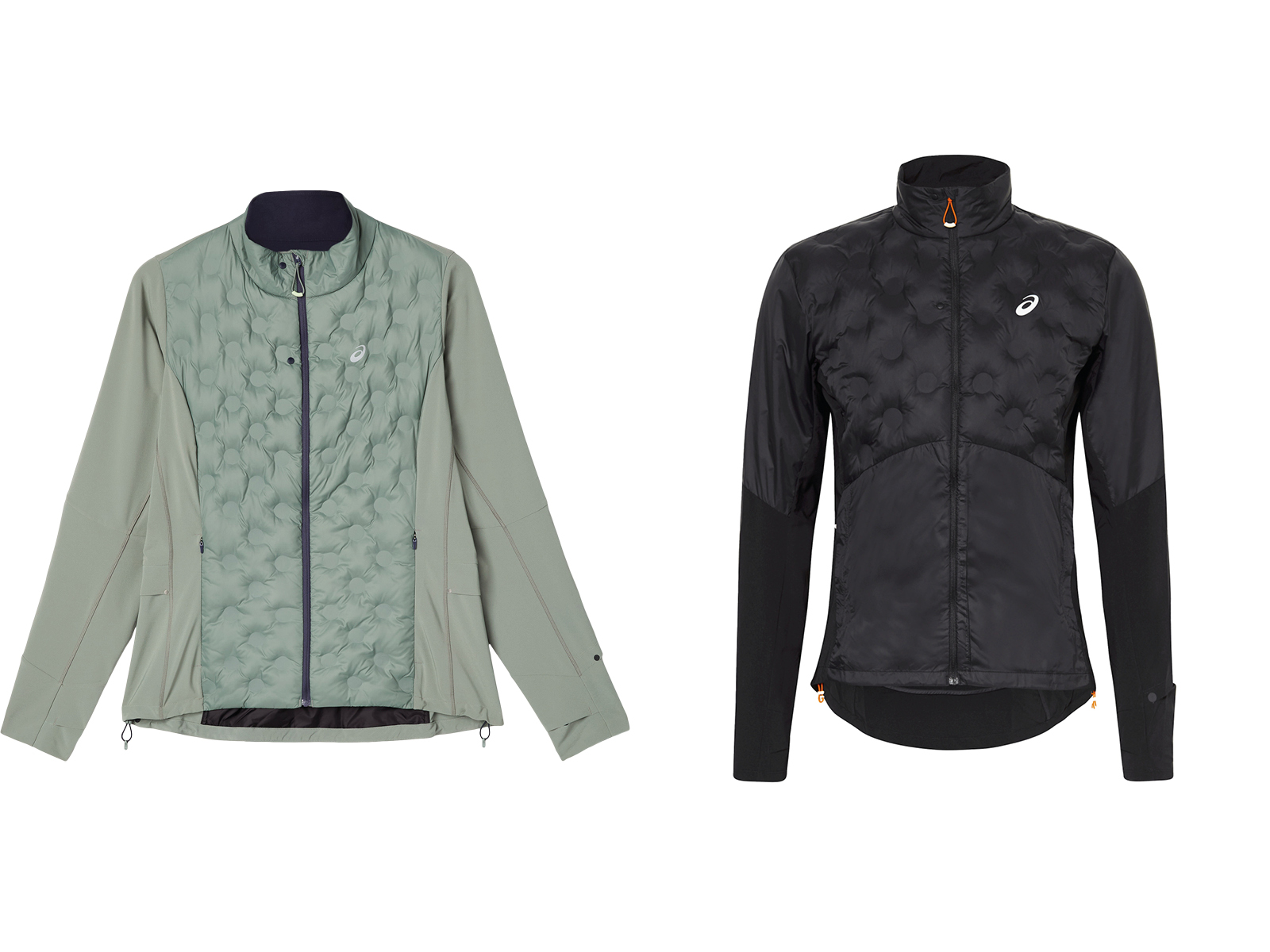 Isolierte Polsterungen im Brust- und Kragenbereich, die zudem winddicht sind, sorgen für angenehme Wärme. Die Jacke ist beschichtet, sodass sie Regen abhält. Sie verfügt über ein atmungsaktives Material und praktische Reißverschlüsse auf dem Rücken, die geöffnet werden können, um die Luftzirkulation zu verbessern und Überhitzung zu vermeiden. Bei geöffnetem Front-Reißverschluss kann die Jacke vorne mit Druckknöpfen zusammengehalten werden, sodass sie nicht offen um den Körper weht, trotzdem aber vorne für Belüftung gesorgt wird. Asics selbst empfiehlt die Jacke für Läufe bei Temperaturen unter 5° Celsius. Die Ärmel sind mit Daumenlöchern versehen, damit die Ärmel nicht hochrutschen. UVP: 175 €