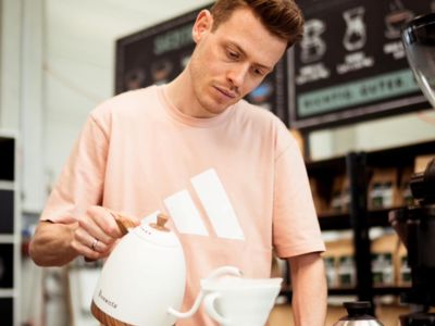 Wir wollten unbedingt Kaffeebohnen aus der Region rund um Iten in Kenia beziehen. Das Problem ist, dass die meisten Bohnensorten von dort für den deutschen Geschmack zu sauer sind. Wir haben unglaublich viel Kaffee blind verkostet, bis wir endlich eine Sorte gefunden hatten, die geschmacklich auch ohne die Zumischung anderer Bohnen überzeugte. Wir haben uns dann mit dem Kaffeebauern getroffen und uns angeschaut, wie diese Bohnen angebaut werden. Seitdem arbeiten wir mit ihm zusammen. Die Idee hinter dem Projekt war nie das große Geld. Das geht gar nicht, wenn man eine nachhaltige Verpackung sowie faire Produktionsbedingungen realisieren will und auch die Geschichte von Agnes Tirop erzählen will. Unser Ziel ist es, mit Moyo einen stabilen Spendenfluss für „Tirop’s Angels“ aufzubauen.