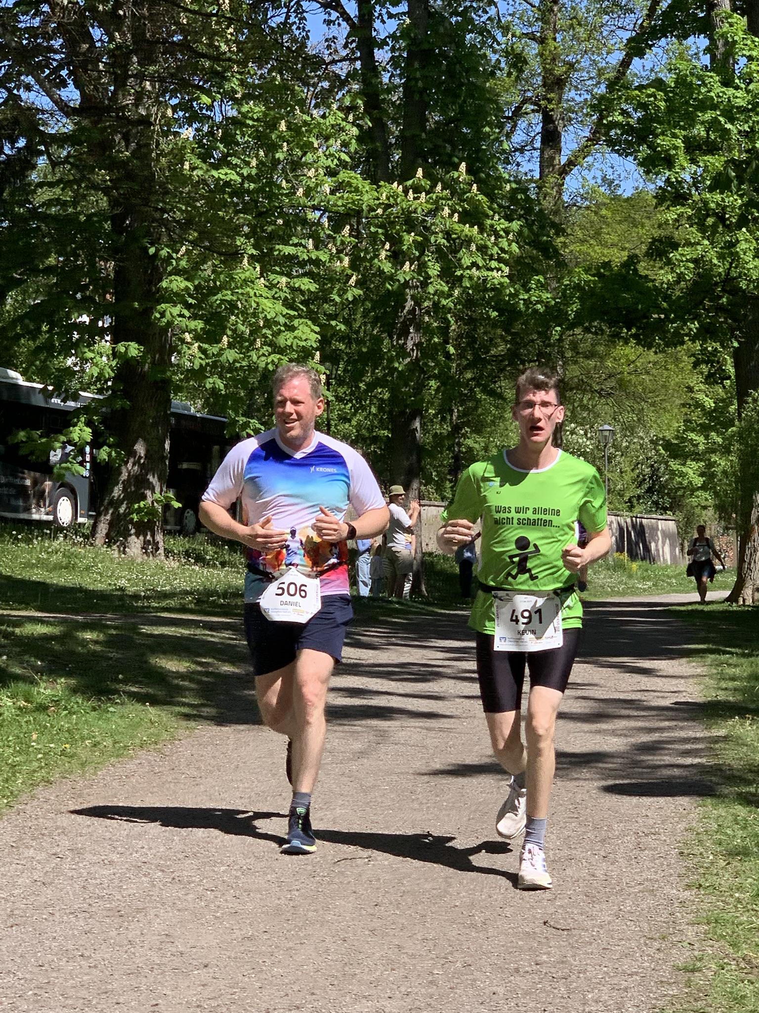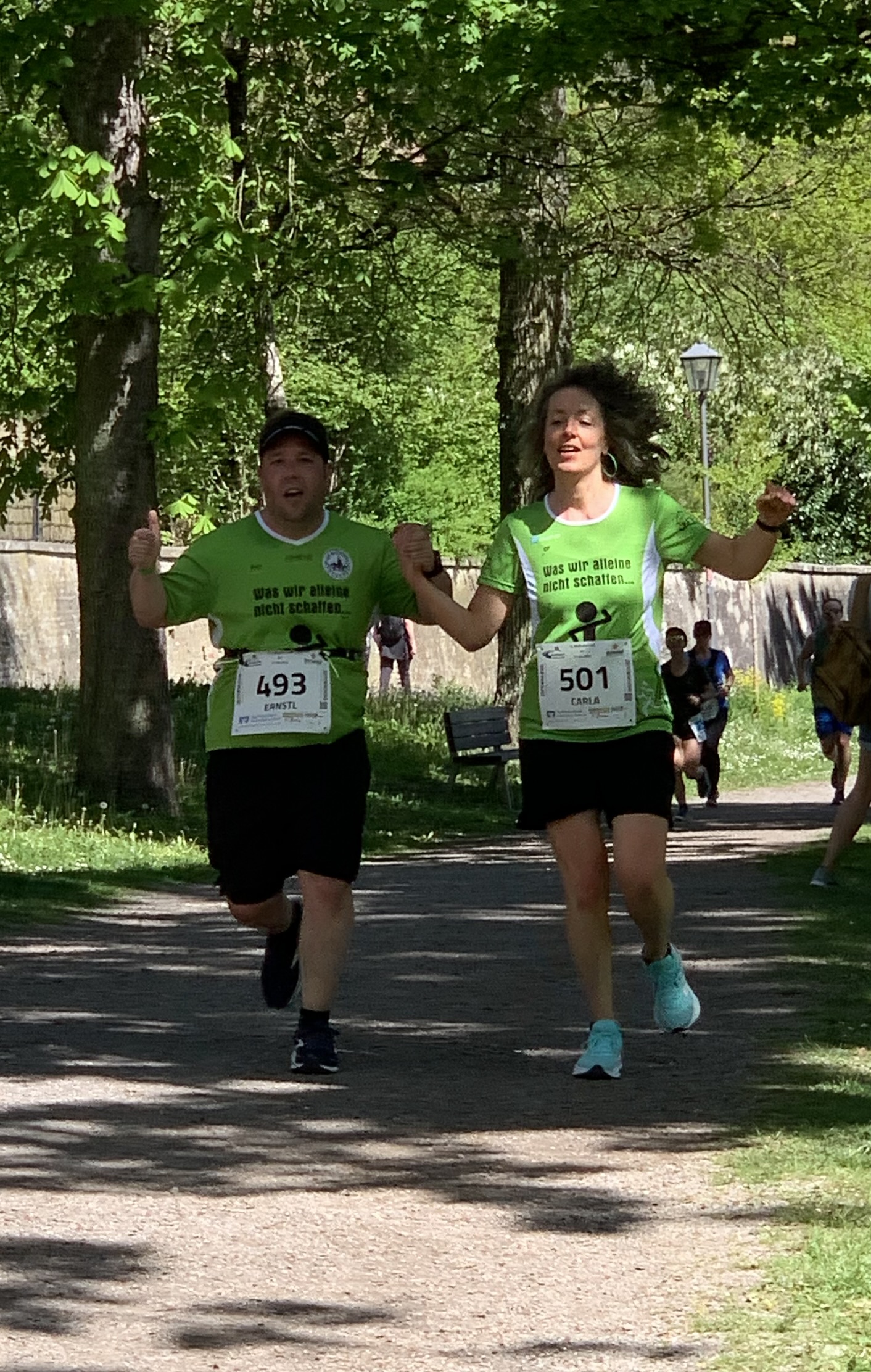 „Das Ganze hat mit dem Landkreislauf Regensburg angefangen“, berichtet der Familienvater. „Das ist ein Staffellauf mit zehn Etappen quer durch den Landkreis.“ Siebzig Kilometer misst der Landkreislauf insgesamt – hier ist Teamarbeit also Voraussetzung, um die Herausforderung zu meistern. „Jede Etappe wird von einem unserer Vereinsmitglieder zusammen mit einer begleitenden Person gelaufen.“ Unterstützt wird die Initiative dabei von zehn Mitarbeiterinnen und Mitarbeitern der Firma Krones aus Neutraubling, die sich freiwillig als Begleitläufer engagieren.