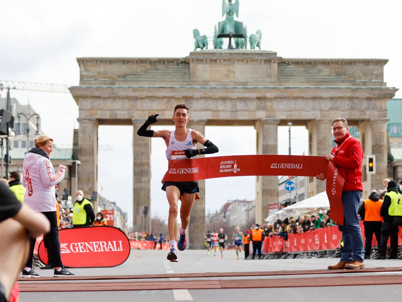 Im Rennen der Männer hatte sich eine Spitzengruppe mit den kenianischen Favoriten frühzeitig abgesetzt. Die 10-km-Marke passierte die Gruppe dann nach 28:00 Minuten. Es war dann Alex Kibet, der mit einer Bestzeit von 59:06 Minuten als Nummer zwei der Startliste ins Rennen gegangen war, der sich bald darauf absetzte. Der 31-jährige Kenianer erlief dann einen großen Vorsprung und gewann in 58:55 Minuten. Zwar verpasste er damit den Streckenrekord knapp, erzielte aber die zweitschnellste je beim Generali Berliner Halbmarathon gelaufene Zeit und eine persönliche Bestzeit. „Ich wollte deutlich schneller laufen, aber es war schwer in der Kälte. Ich habe heute zwar nicht den Weltrekord gebrochen, aber immerhin das Rennen gewonnen“, sagte Alex Kibet.
