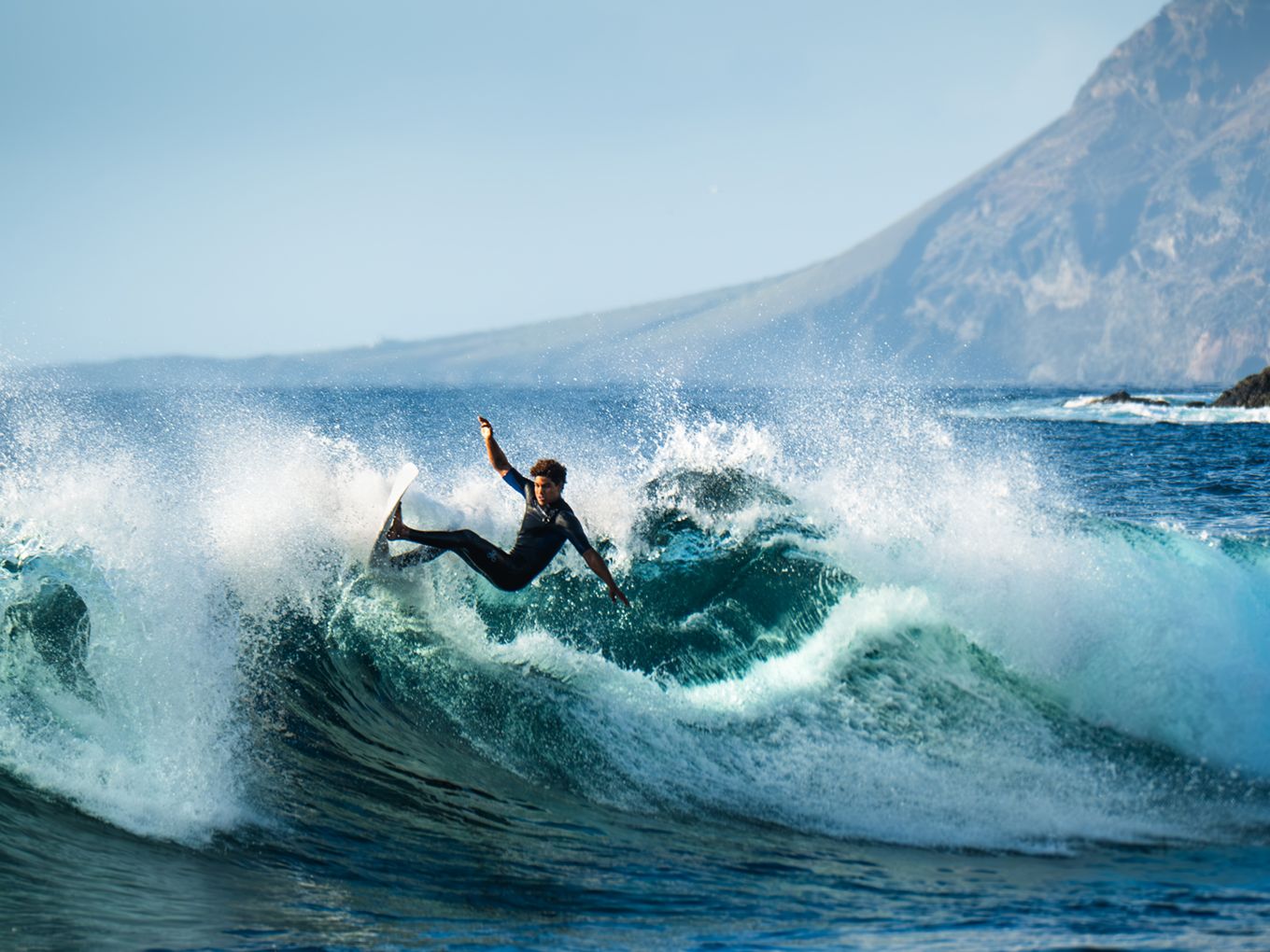 Die konstanten Passatwinde machen die Insel zu einem der besten Reviere Europas für Board-Sportarten. Surfer, Stand-up-Paddler und Open-Water-Schwimmer nutzen die ganzjährig milden Temperaturen des Atlantiks für ihr Training – selbst im Winter sinken die Wassertemperaturen selten unter 19 Grad.