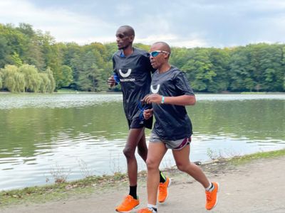 Der Paraolympionike hat guten Kontakt zu Eliud Kipchoge und lacht über sein letztes Treffen mit ihm: „Das letzte Mal als wir uns sahen, habe ich ihm vorgeschlagen, dass er mit verbundenen Augen und einem Begleitläufer einen Marathon oder 10 Kilometer gegen mich laufen soll. Dann würden wir gucken, wer schneller ist. Er hat die Challenge nicht angenommen. Er weiß, dass es schwierig ist“.