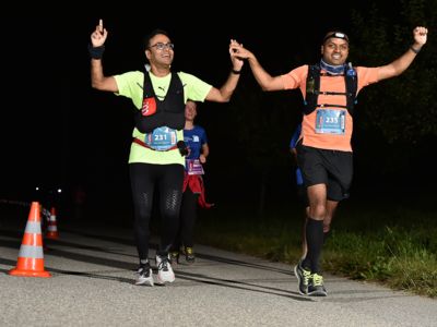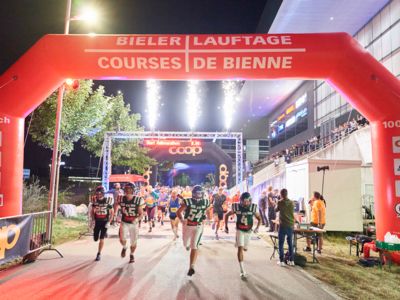 Die Glücksgefühle, die dort auf alle Finisher warten, kann man in Biel auch teilen: Es besteht die Möglichkeit, die 100 Kilometer als Zweier- oder Fünfer-Team zu bewältigen. Für die Fünferstaffeln werden die Wechselzonen in Lyss (etwa bei Kilometer 21), in Oberramsern (etwa bei Kilometer 38), in Kirchberg (etwa bei Kilometer 56) und in Bibern (etwa bei Kilometer 79) eingerichtet. Bei den Paaren läuft der oder die erste 56 Kilometer von Biel bis Kirchberg, der oder die zweite übernimmt die übrigen 44 Kilometer bis ins Ziel an der Tissot Arena. Gemeinsam durch die Nacht zu laufen, die Wechselzonen anzusteuern und als Team die 100 Kilometer zu erleben, ist einzigartig.