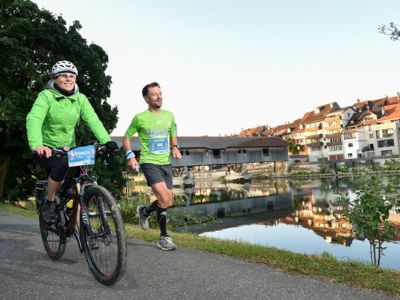 Am Ende des wieder leicht ansteigenden Biberentales wartet ein kurzer, aber knackiger Aufstieg, um durch den Leuzigenwald nach Arch zu gelangen. Der Aare entlang erreicht die Strecke Büren. Hier wartet die Holzbrücke über die Aare, welche letztes Jahr zum ersten Mal von der Läuferschar benutzt werden durfte. Entlang der Alten Aare geht es auf einem erneut attraktiven Uferweg in Richtung Meinisberg. Ab dem Friedhof Meinisberg führen die letzten Kilometer über ein von früher her bekanntes Streckenstück entlang der Bahnlinie zurück nach Biel. Nach der Bahnunterführung in Mett ist die Tissot Arena bereits in Sicht, wo die letzten Meter vor dem Zieleinlauf warten.