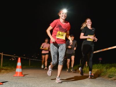 Als erste dürfen am Freitagabend diejenigen auf die Strecke, die sich die 100 Kilometer vorgenommen haben. Traditionell fällt der Startschuss mit Einbruch der Nacht um 22 Uhr. Der Start- und Zielbereich ist an der hochmodernen Tissot Arena, in der Fußball und Eishockey gespielt wird und wo Jahr für Jahr jede Menge Top-Veranstaltungen stattfinden. Von dort geht es erstmal in die Innenstadt von Biel. Hier herrscht eine Atmosphäre wie bei einem nächtlichen Citylauf, bevor es dann in die oft einsame Nacht im Umland von Biel geht.