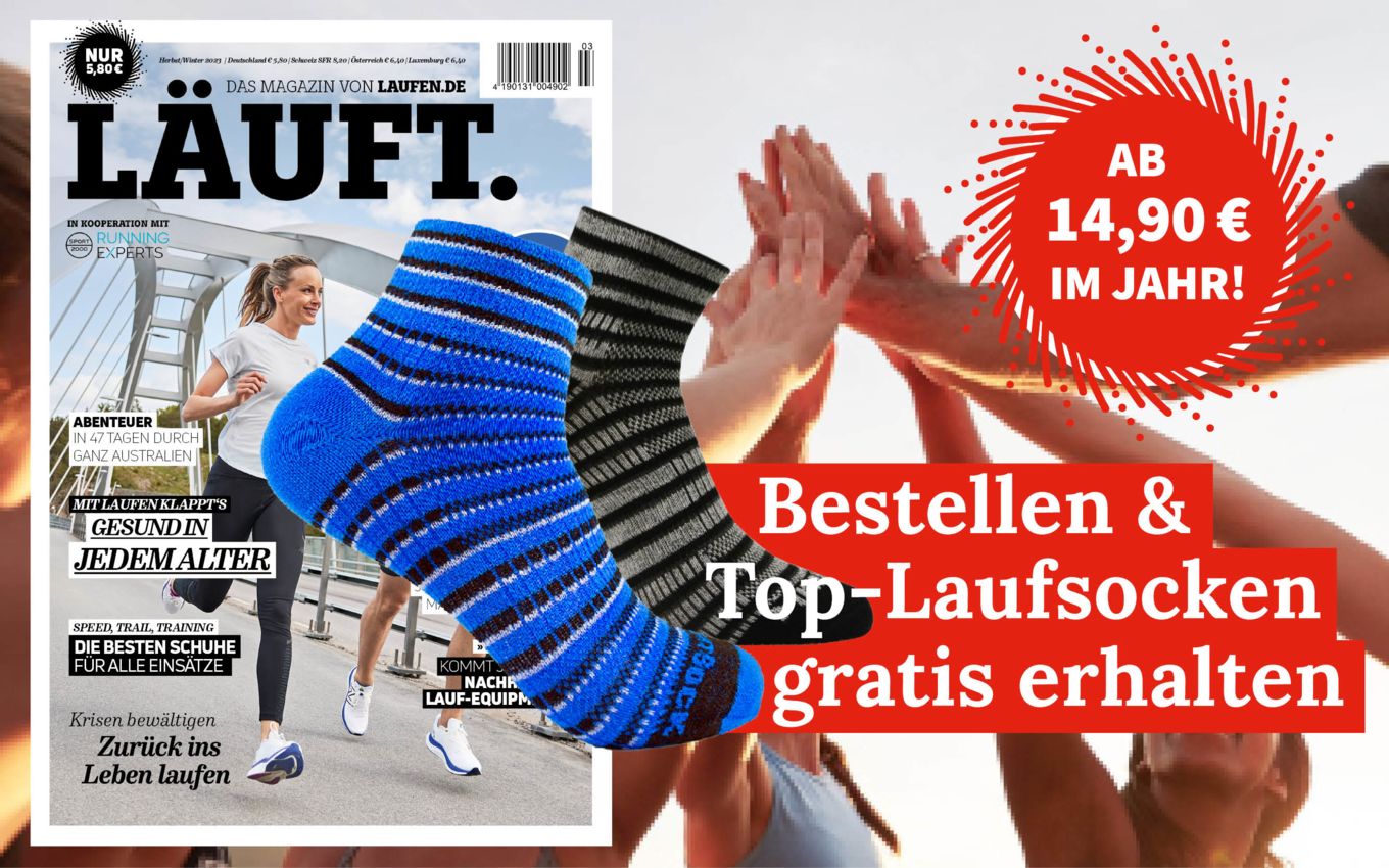 LÄUFT. abonnieren, Fitness-Paket mit Gratis-Laufsocken erhalten und alle Services von laufen.de nutzen!