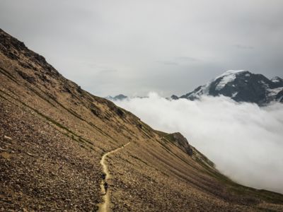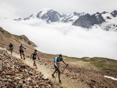 Der langgezogene schmale Gebirgspfad führt direkt zum Ziel, das oberhalb der legendären Passhöhe des Stilfserjochs bei der Dreisprachenspitze in 2.845 Metern Höhe liegt. Hier werden alle Finisher mit einem traumhaften Blick auf die Naturlandschaft des Nationalparks Stilfserjoch und den König Ortler belohnt. Von hier aus kann man nicht nur den Ortler (3.905 Meter), sondern auch den Piz Bernina (4.049 Meter) sowie die fernen Gipfel der Weißkugel (3.739 m) und des Piz Buin (3.312 m) bestaunen. Rund die Hälfte der Strecke des anspruchsvollen „Stilfserjoch Stelvio Trail Run“ verläuft auf einer Höhe von über 2.000 Metern, inmitten des Nationalparks Stilfserjoch – eines der größten Naturschutzgebiete im gesamten Alpenraum.