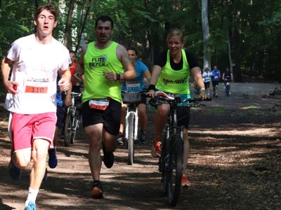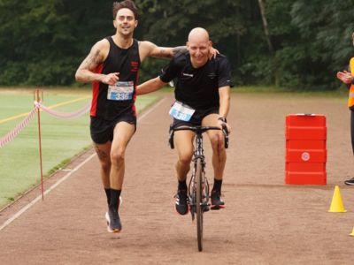 „Run & Bike Berlin“ heißt das Sportformat mit extra großem Spaßfaktor, das vom SC Tegeler Forst am 16. September 2023 in Berlin angeboten wird. Dabei steht der Teamgedanke im Vordergrund: In Zweierteams wird die Strecke bewältigt, dabei läuft immer ein Teammitglied, das andere radelt.