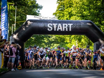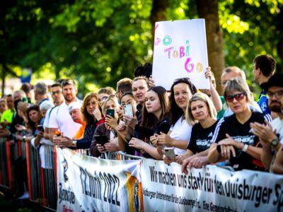Und was für ein Erlebnis das ist: Vom Start im Sportpark bis zum Ziel in der Schauinsland-Reisen-Arena, wo sonst die „Zebras“ des MSV ihre Drittbundesliga-Spiele absolvieren, folgt eine Sehenswürdigkeit der anderen. Schon der Sportpark ist deutschlandweit einzigartig: Auf dem Gelände einer ehemaligen Kiesbaggerei des Stahlunternehmens Krupp wurde noch vor dem Zweiten Weltkrieg ein Gelände für Sport und Erholung mit Stadion, einer Schwimmarena (heute die Wasserski-Anlage) und einer Regattabahn. Später kamen noch eine neue Schwimmhalle, die Eishalle, ein Leichtathletik-Stadion und eine Skateranlage dazu. Rechnet man das Segel- und Jogging-Revier der Sechs-Seen-Platte hinzu, dann ist der Sportpark Duisburg mit knapp 360 Hektar größer als der Central Park in New York (und mindestens ebenso innenstadtnah).
