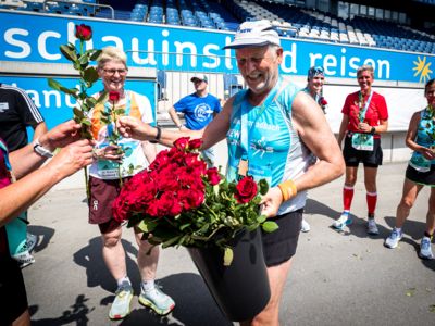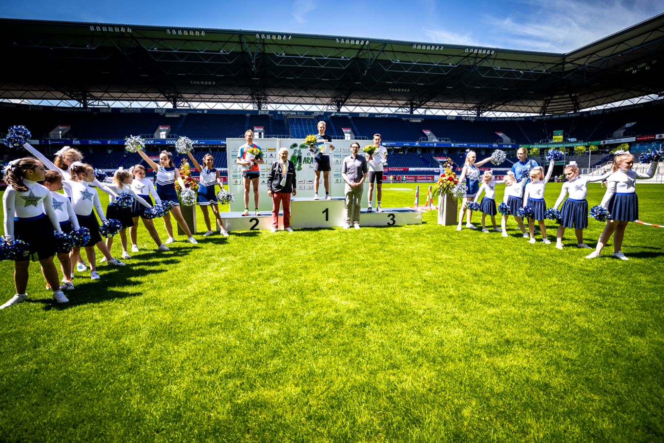 Zieleinlauf und Siegerehrungen in der Fußballarena