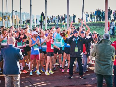 Verpflegungsstellen gibt es etwa alle fünf Kilometer entlang der Strecke. Dort gibt es Wasser, Mineralgetränke, Cola sowie Äpfel und Bananen. Die Ziellinie ist, so wie die Startlinie, ebenso am Regattahaus am Baldeneysee. Im Ziel erhältst du natürlich deine wohlverdiente Medaille und kannst dich im Nach-Ziel-Bereich versorgen. Auch alkoholfreies Weizenbier ist erhältlich.