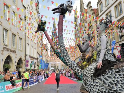 Münster feiert in diesem Jahr „375 Jahre Westfälischer Frieden“. Am 3. September werden aber Läuferinnen und Läufer gefeiert. Anlässlich des 21. Volksbank-Münster-Marathons wird die Fahrrad- zur Laufstadt – und feierlich der rote Teppich ausgerollt. Gänsehaupt pur ist garantiert beim Zieleinlauf auf dem beflaggten Prinzipalmarkt, wenn tausende Zuschauer die Aktiven ins Ziel schreien werden.