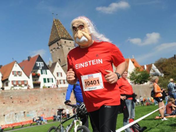 Namensgeber der Veranstaltung ist der wohl berühmteste Sohn der Stadt: Albert Einstein. Der weltbekannte Physiker wurde am 14. März 1879 in der Bahnhofstraße 20 geboren, allerdings lebte er nur 15 Monate in der Donaustadt. Wie 2022 ist der Start der langen Läufe an der Ulm-Messe. Von dort aus geht es zweimal durch die Innenstädte von Ulm und Neu-Ulm. Seit 1810 ist Ulm getrennt von seinem ehemaligen Gebiet rechts der Donau, das bei Bayern blieb und auf dem sich die Stadt Neu-Ulm entwickelte. Das „alte“ Ulm gehört zu Baden-Württemberg. Die kurzen Läufe starten auf der Höhe des Maritims. Das Ziel ist für die langen und die kurzen Läufe wieder der Münsterplatz zu Füßen des gotischen Münsters, dessen Kirchturm mit 161,53 Metern der höchste der Welt ist.
