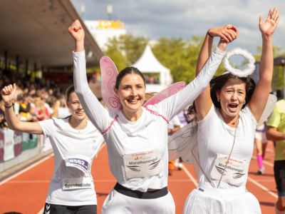 In Deutschland einzigartig: Alle Läufer und Läuferinnen können sich auf den letzten fünf Kilometern von ihrem persönlichen Marathonengel bis ins Ziel begleiten lassen.