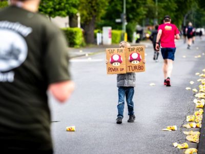 Noch berühmter als der Hafen ist der wohl populärste Bürger Duisburgs – obwohl er reine Fiktion ist. Der Rhein-Ruhr-Marathon führt durch Schimmi-Town und den Lieblingsstadtteil des legendären Tatort-Kommissars Horst Schimanski, der in den 80ern in Duisburg ermittelte: Ruhrort. Denn genau so hieß die erste Folge, die im Premierenjahr des Rhein-Ruhr-Marathons 1981 über die Bildschirme flimmerte: „Duisburg-Ruhrort“. In Ruhrort sind auch die Versorgungsstände 3 und 4 aufgebaut. Es ist aber ein Gerücht, dass es dort Currywurst gibt.