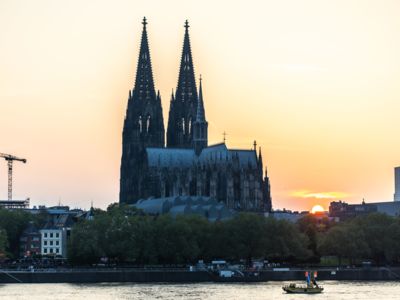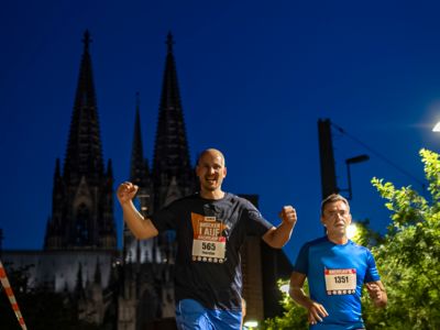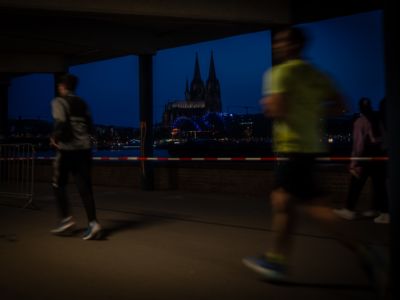 Wenn die Sonne gegen 21 Uhr allmählich hinter den Domtürmen versinkt, versammelt man sich zum Start. Und kaum auf der Strecke, wartet schon der erste ganz große Höhepunkt des Laufes. Sobald der Tanzbrunnen verlassen wird, geht es direkt am Rhein entlang. Einen schöneren Blick auf das Kölner Rheinpanorama mit dem Dom gibt es nicht. Und was für eine Kirche das ist. Das am 15. August 1248 begonnene Bauwerk war mit einer Höhe von 157 Metern von 1880 bis 1884 das höchste Gebäude der Welt. Heute ist der Kölner Dom die meistbesuchte Sehenswürdigkeit Deutschlands. Kunst- und kirchenhistorisch Interessierte können ganze Tage in dem riesigen Bau verbringen und immer wieder neues entdecken. Auch der kurze Blick während des Laufens auf die in der Dämmerung illuminierte gotische Kathedrale ist faszinierend.