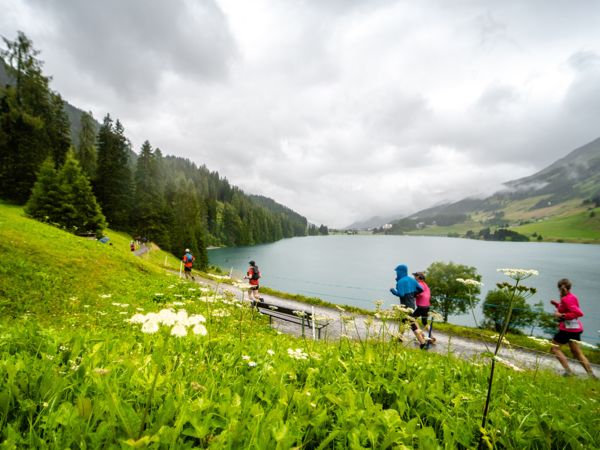 Die abwechslungsreiche Strecke des Silver Run über 23,6 Kilometer und 631 Höhenmeter im Auf- sowie 279 Höhenmeter im Abstieg besticht durch ihre landschaftliche Schönheit und verlangt dir trotzdem alles ab. Gestartet wird im Zentrum von Klosters auf dem Bahnhofplatz. Von dort geht es der Landquart entlang Richtung Aeuja und dort beginnt der leichte Aufstieg ins alte Walserdörfchen Monbiel. Die Strecke führt talauswärts über den beliebten Zwergenweg nach Selfranga. Hier beginnt der steile Aufstieg über den wildromantischen Schluchtweg auf den Wolfgangpass, dem höchsten Punkt der Strecke mit 1631 Metern. Mit großartigem Bergpanorama geht es dem schönen Davoser See entlang Richtung Ziel beim Davoser Sportzentrum.
