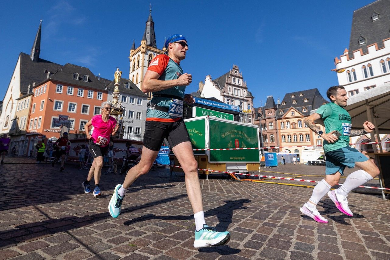 Beim Halbmarathon sowie 10- und 5-Kilometer-Lauf machst du dann einen Abstecher in den Trierer Norden und kommst dann zurück Richtung Innenstadt. Während alle auf der 5-Kilometer-Strecke dann zum Ziel abbiegen, läuft der Rest vorbei am Rheinischen Landesmuseum sowie den Kaiserthermen, einer historischen römischen Badeanlage. Du passierst noch die Barbarathermen und läufst dann wieder Richtung und durch die malerische Altstadt von Trier. Beim Halbmarathon wird diese Runde mit einer kleinen Extraschleife zweimal absolviert. Das Ziel befindet sich in der Simeonstraße mit direktem Blick auf die Porta Nigra, nach einem einmaligen Zieleinlauf durch die gesamte Fußgängerzone. Alle 10-Kilometer-Läuferinnen und -Läufer absolvieren die Runde einmal.