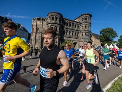 Die 10-Kilometer- und Halbmarathonstrecke sind flach, schnell und offiziell vermessen – hier kannst du, wenn du willst, auf Bestzeitenjagd gehen. Oder dir mehr Zeit fürs Genießen lassen. Schon der Start aller Läufe ist ein Highlight, denn er findet direkt an der Porta Nigra statt. Das berühmteste Wahrzeichen der Stadt wurde um 170 n. Chr. erbaut und ist das größte erhaltene römische Stadttor nördlich der Alpen.