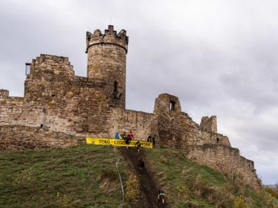 Wenn du dich für die Expert-Strecke entscheidest, stehen dir 17 Kilometer bevor. Gespickt mit mindestens 20 Hindernissen, 700 Höhenmetern im Aufstieg und 2 Burgen. Auf den 10 Kilometern des Sprints passierst du eine Burg, 15 Hindernisse und nimmst 350 Höhenmeter mit.